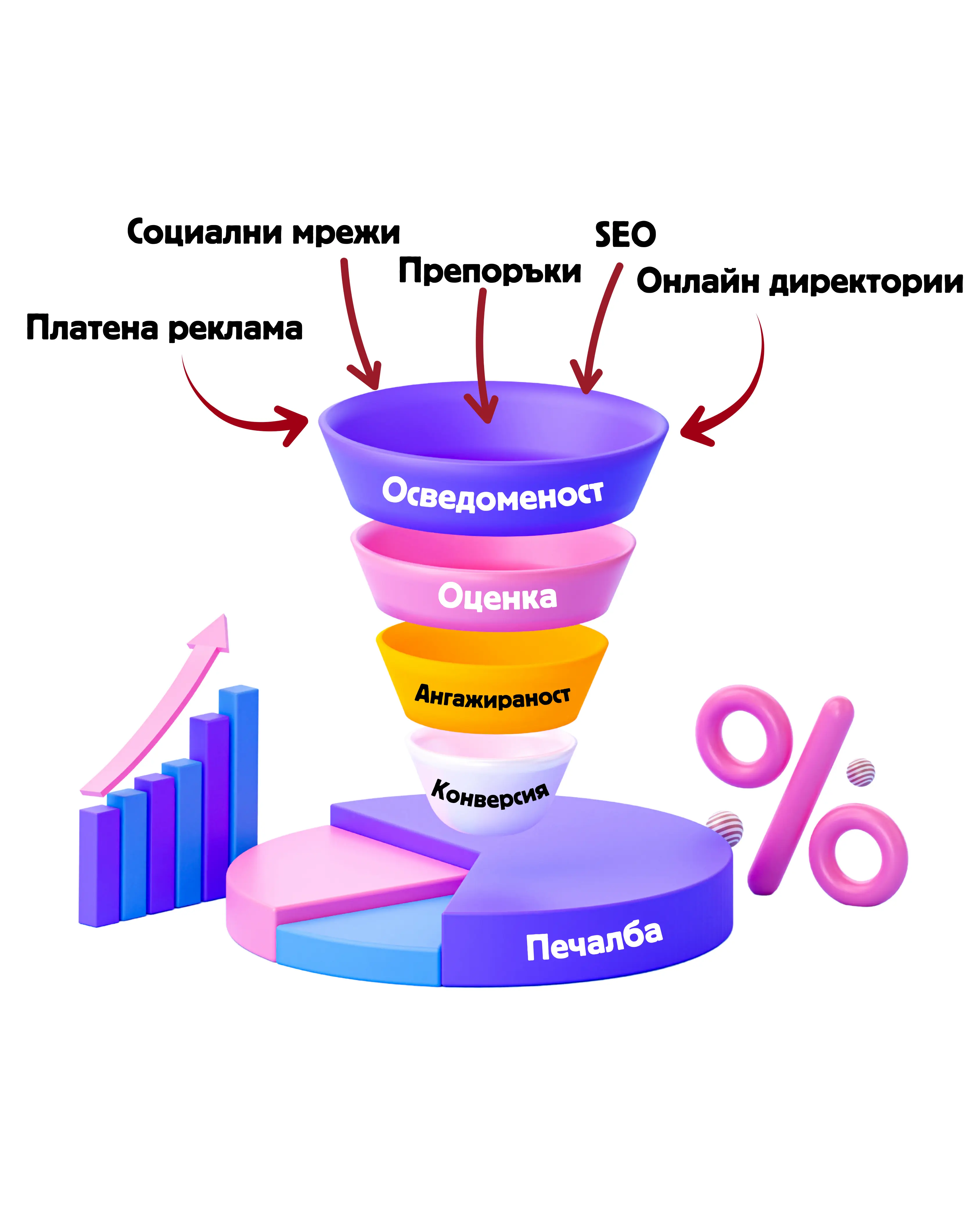 Ефективната Продажбена Фуния не разсейва – тя води към действие. Разработваме продажбени фунии с фокус върху конверсия. Всеки елемент е тестван и оптимизиран – от заглавието до формата за контакт. Резултат? Повече lead-и, записвания и продажби при същия трафик.
